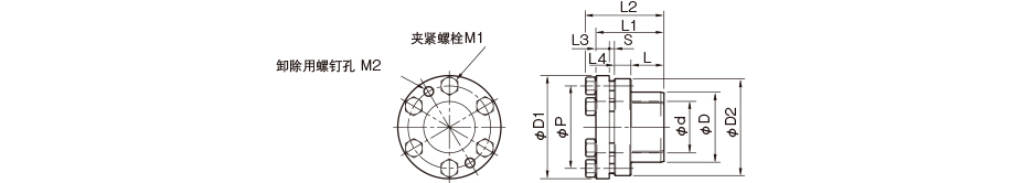 | 型号 | d | D | D1 | D2 | P | L | L1 | L2 | L3 | L4 | S | M1 | M2 |