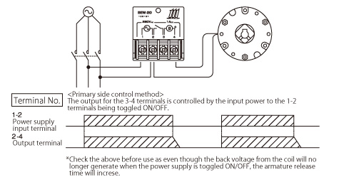| 3-4 | Output terminal (full-wave) | Connector for an electromagnetic clutch or brake (when full-wave rectified)) |
