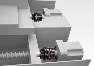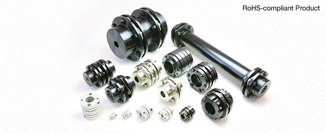 These couplings have disc springs that use steel for the body. This makes them optimal for ordinary feed shafts that have high torsional stiffness, have accurate shaft rotation, and are capable of ultra-precise control. Both single-element types with high torsional stiffness and flexible double-element types that separate double elements with a spacer are available.
