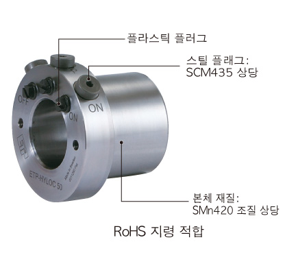 펌프에 의해 오일을 슬리브 내로 압입하고 내부에 삽입된 테이퍼 피스톤의 쐐기를 이동시킴으로써 축과 허브가 슬리브를 매개로 강력하게 결합됩니다. 또한 결합에 사용된 오일은 피스톤 이동에만 필요하므로, 결합 후에 압력은 걸리지 않고 테이퍼 피스톤의 쐐기 효과만으로 유지됩니다.